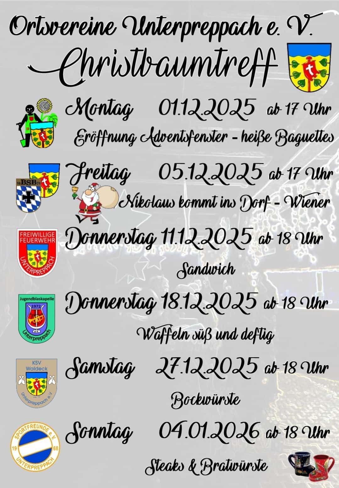 Aktuell werden durch die Ortsvereine Unterpreppach e. V. die alljährliche Kirchweih und der Christbaumtreff durchgeführt. Bei weiteren Veranstaltungen sind wir unterstützend tätig.